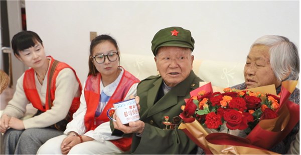 志愿者们手捧鲜花,用实际行动向老英雄送去节日祝福。聆听他讲述战斗故事后,志愿者们无不动容感慨,敬佩英雄前辈的牺牲自我、保家卫国的奉献精神。大家纷纷表示,聆听抗美援朝老前辈浴血奋战的故事,更加铭记抗美援朝战争的艰辛历程和伟大胜利,增强爱国情怀。