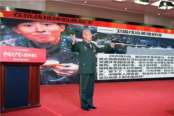 12月3日,2025年全国高校“中国共产党人精神谱系”河南省示范宣讲活动在河南财经政法大学东校区举行。亳州籍退役老兵、全国高校“中国共产党人精神谱系”宣讲团成员、全国模范退役军人、全国老兵宣讲团成员许玉亭应邀出席,并作专题宣讲报告。
